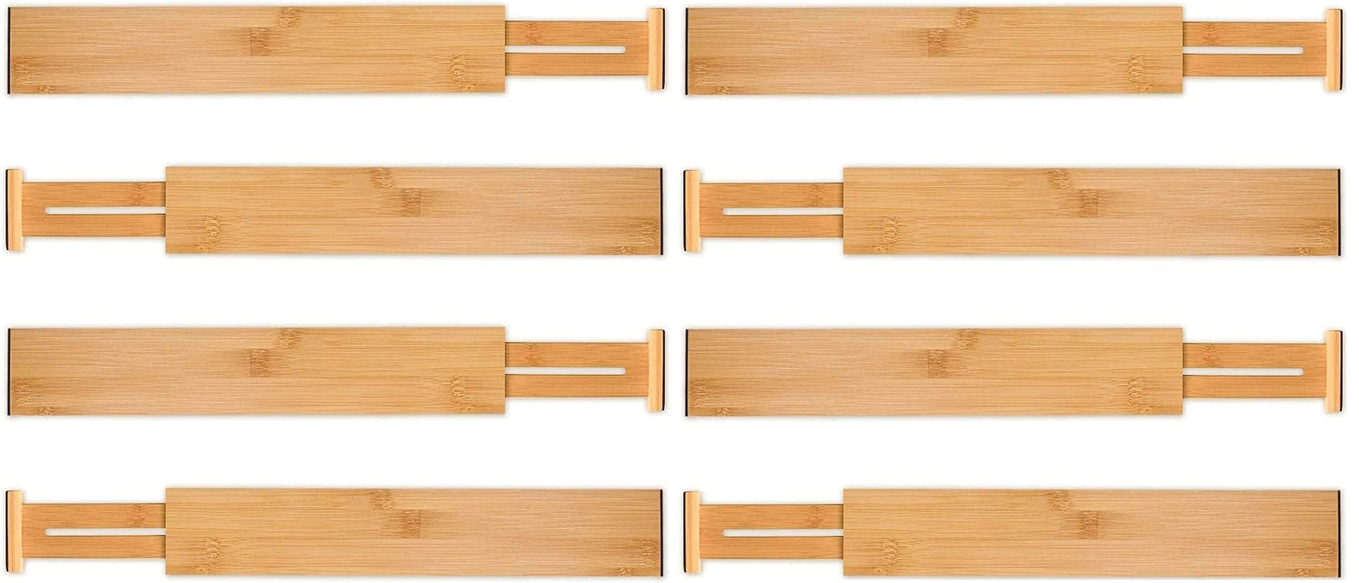 8 Pack Bamboo Adjustable Kitchen Drawer Dividers (Large, 44-55 cm)